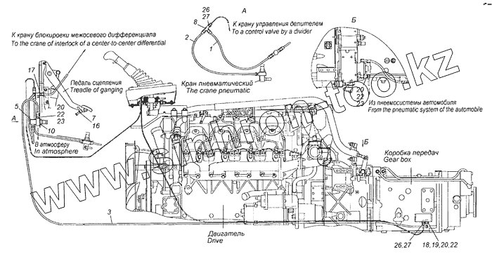 Каталог запасных частей к технике: Камский автозавод 65226. 65226-1772005 Установка пневмопривода управлением переключения передач