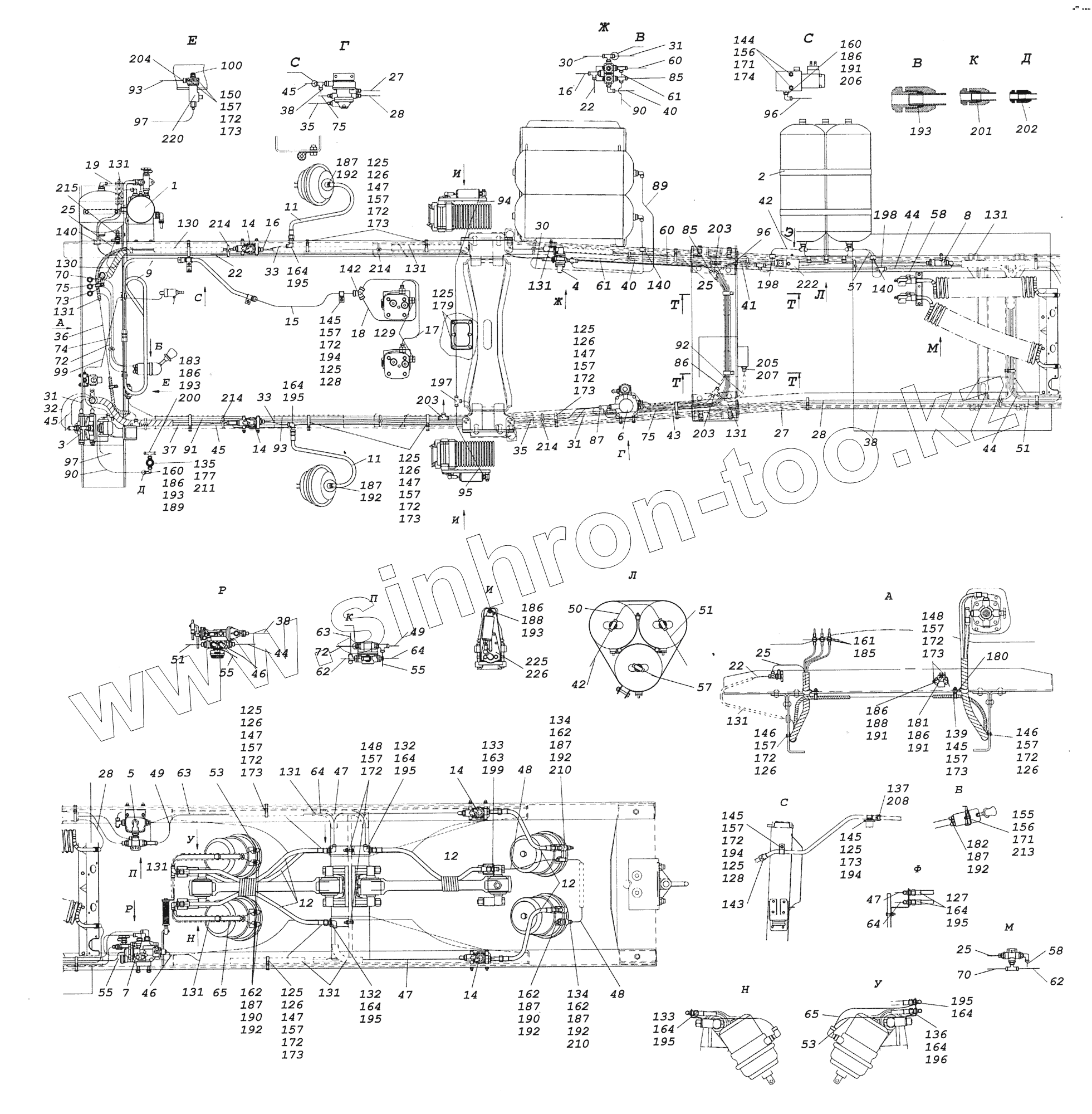Каталог запасных частей к технике: Камский автозавод 65226. 65226-3500006 Установка пневмотормозов