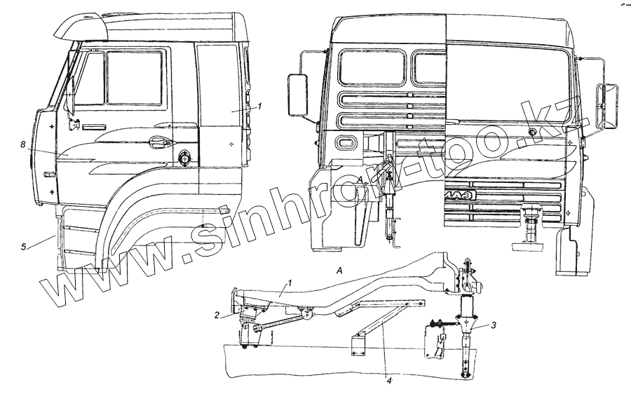 Каталог запасных частей к технике: Камский автозавод 65226. 65226-5000006 Установка кабины с оперением