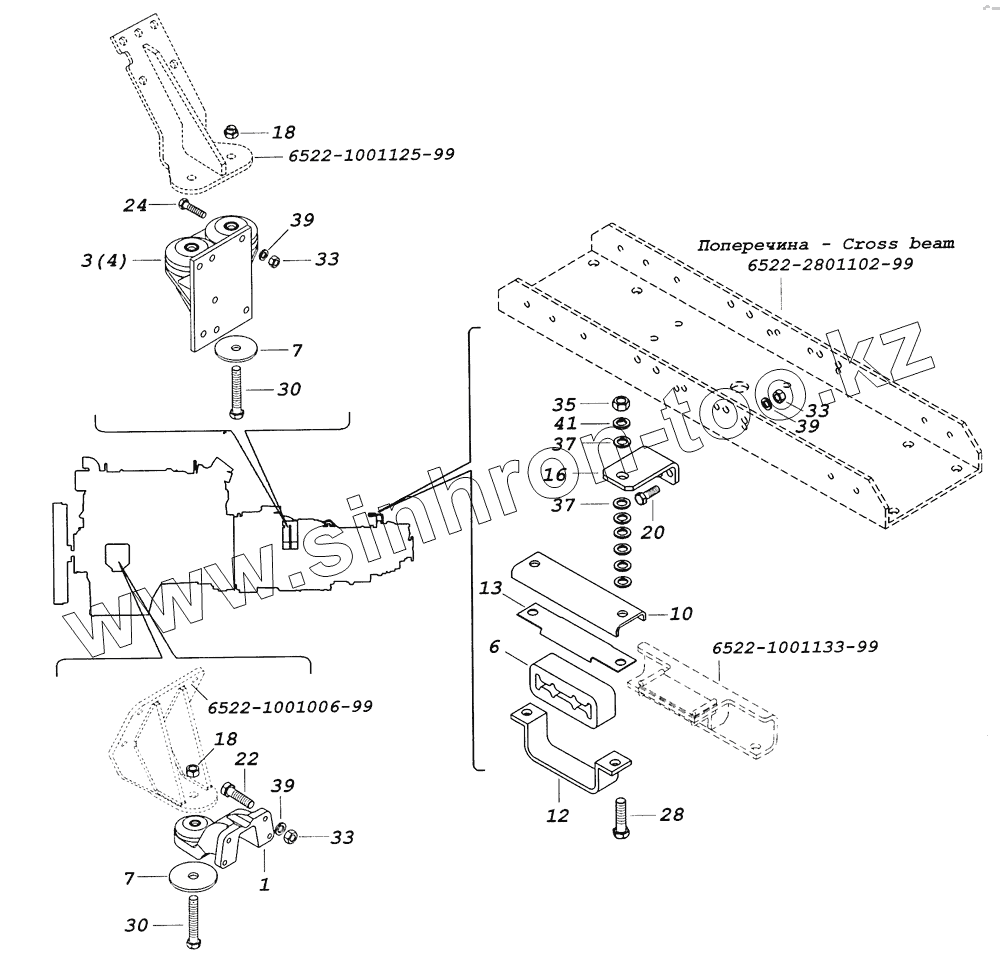 Каталог запасных частей к технике: Камский автозавод 65226. 6522-1001005-99 Установка силового агрегата