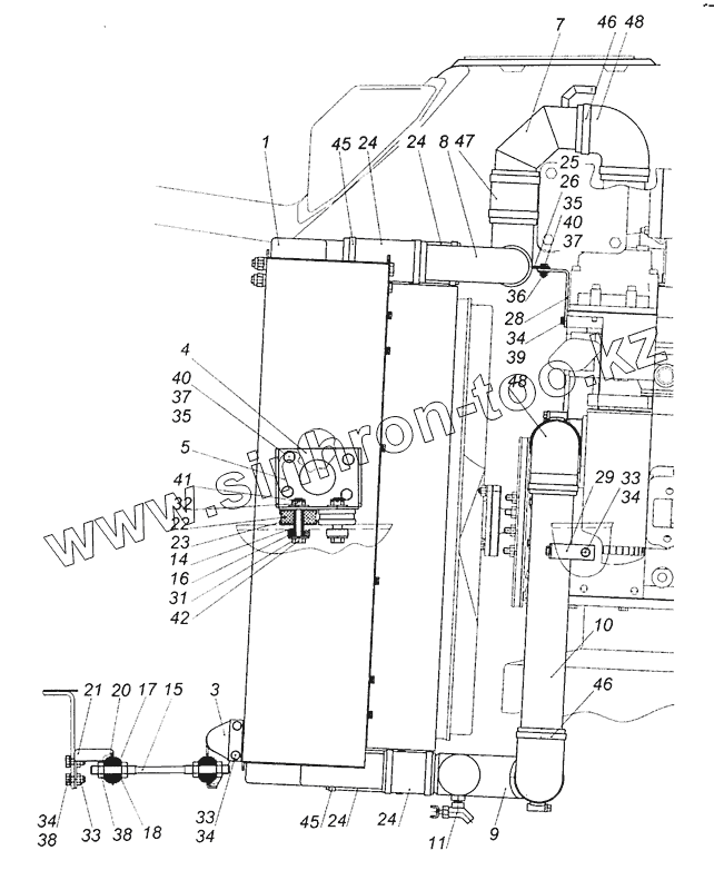 Каталог запасных частей к технике: Камский автозавод 65226. 6522-1300023-99 Установка радиатора