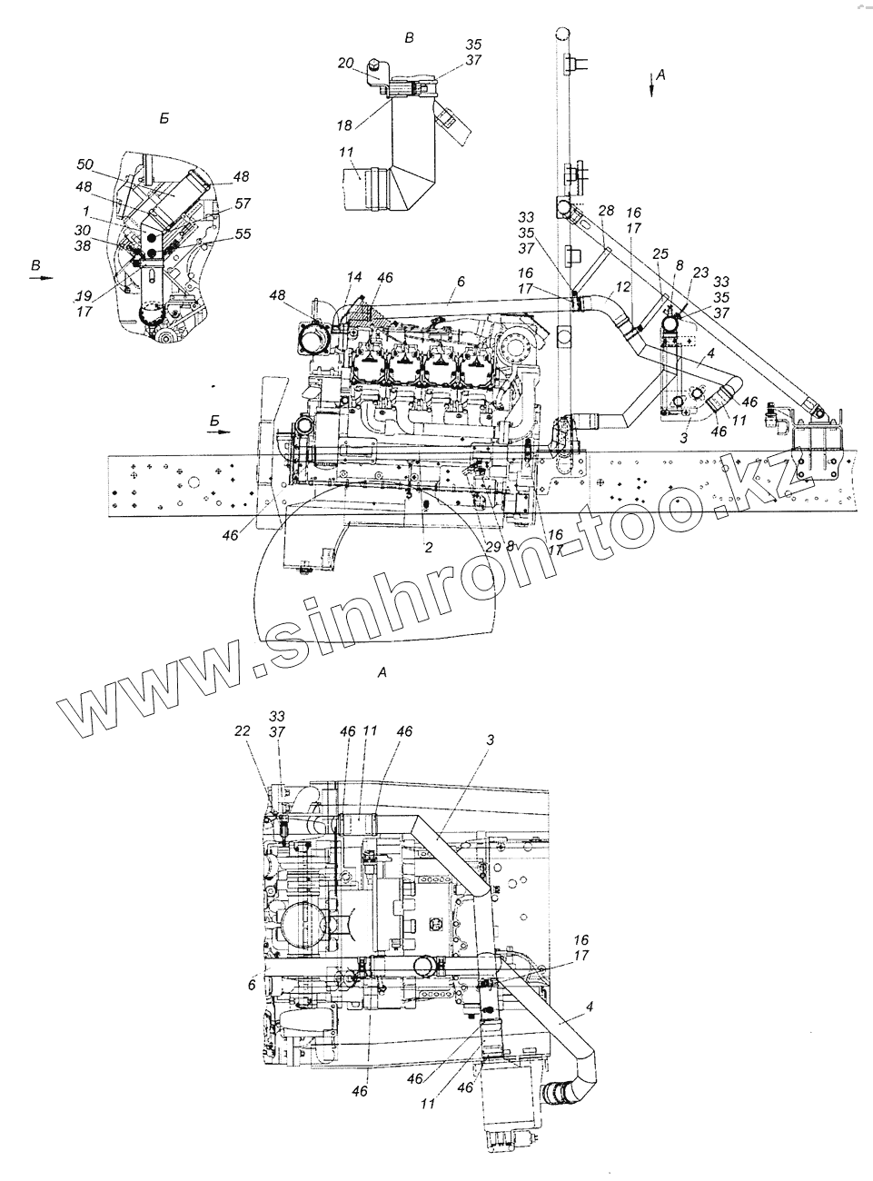 Каталог запасных частей к технике: Камский автозавод 65226. 6522-1303400-99 Установка труб теплообменника ретардера