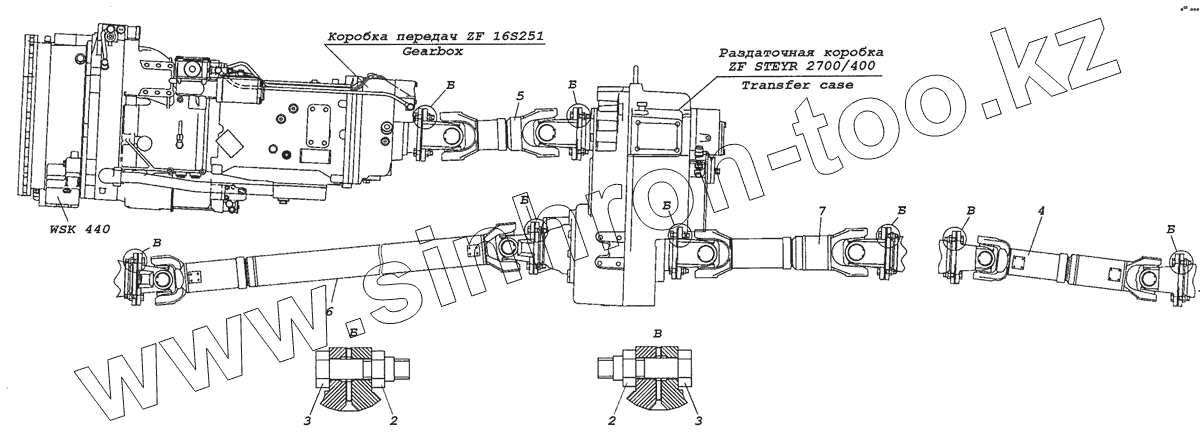 Каталог запасных частей к технике: Камский автозавод 65226. 6522-2200001-99 Установка карданных валов
