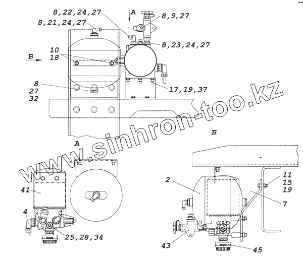 Каталог запасных частей к технике: Камский автозавод 65226. 6522-3500011-96 Установка осушителя