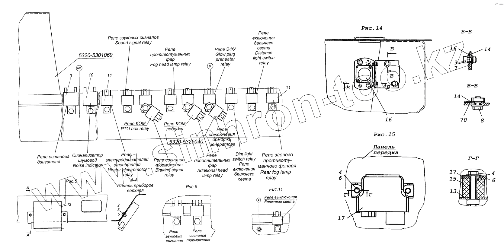 Каталог запасных частей к технике: Камский автозавод 65226. 6522-3747001-99 Установка реле