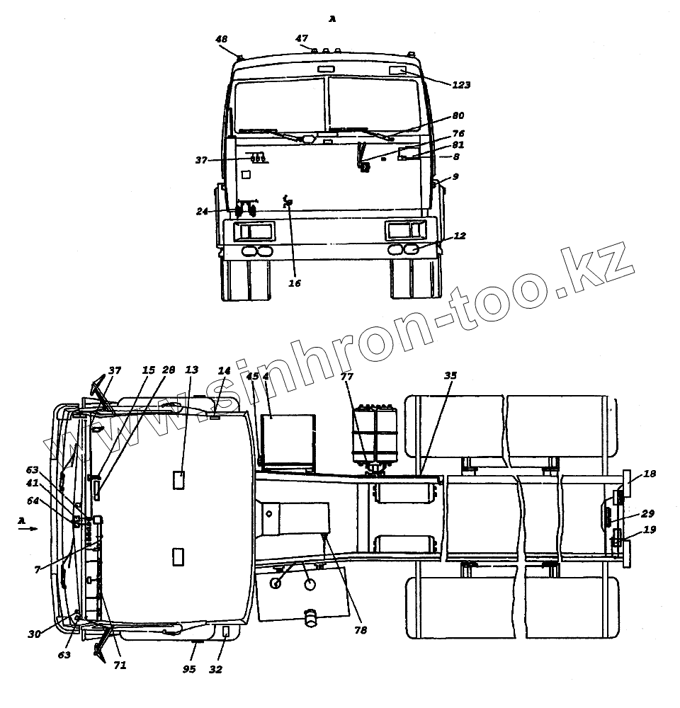 Каталог запасных частей к технике: Камский автозавод 65226. Электрооборудование. Расположение на автомобиле