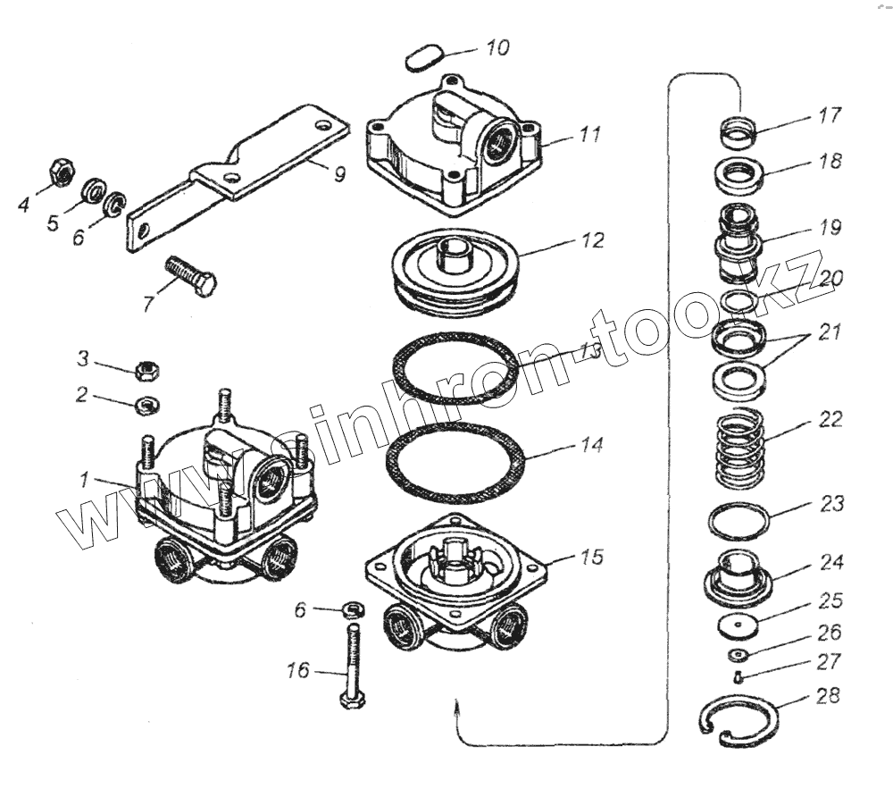 Каталог запасных частей к технике: Камский автозавод 65226. Клапан ускорительный в сборе