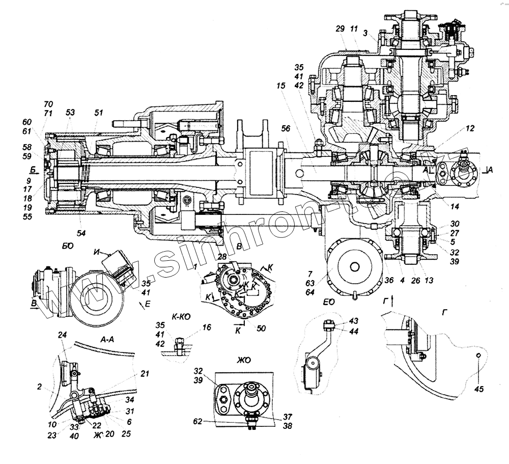 Каталог запасных частей к технике: Камский автозавод 65226. Мост средний
