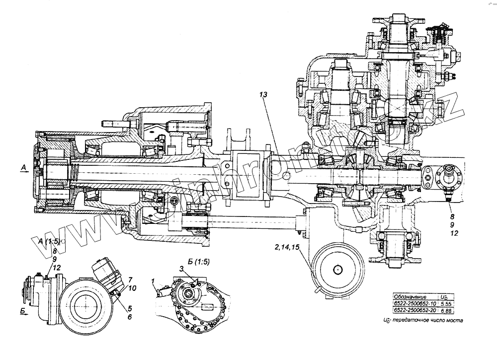 Каталог запасных частей к технике: Камский автозавод 65226. Мост средний