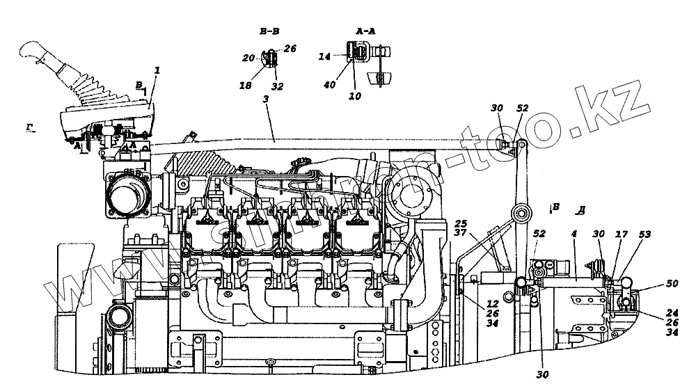 Каталог запасных частей к технике: Камский автозавод 65226. Привод управления механизмом переключения передач