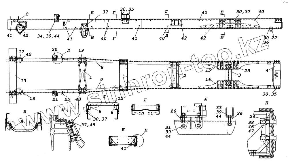 Каталог запасных частей к технике: Камский автозавод 65226. Рама