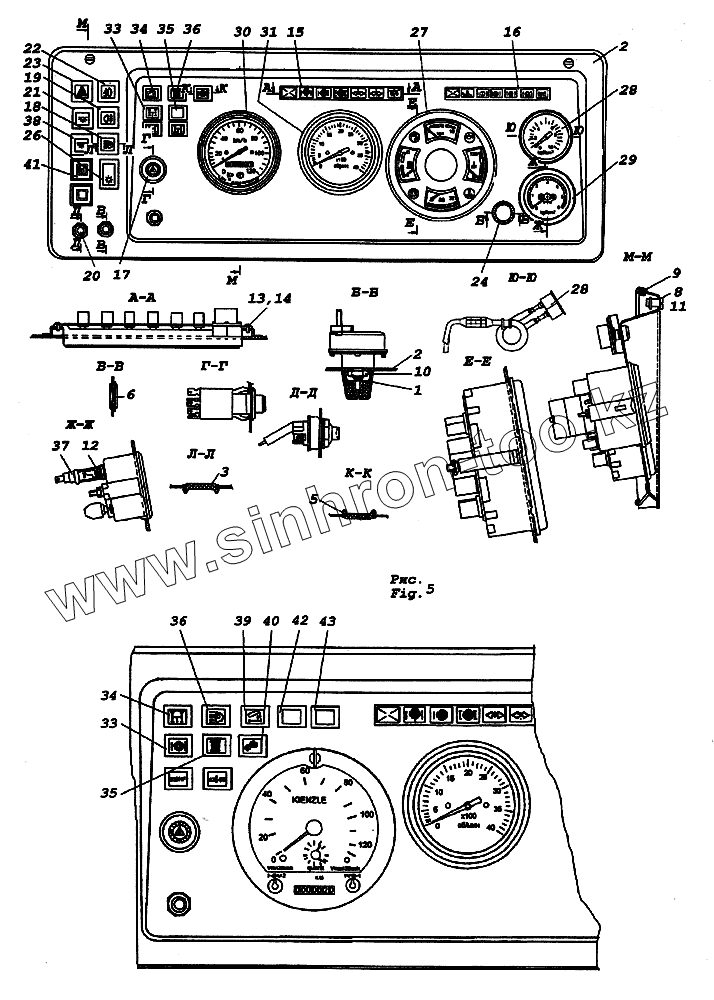 Каталог запасных частей к технике: Камский автозавод 65226. Щиток приборов