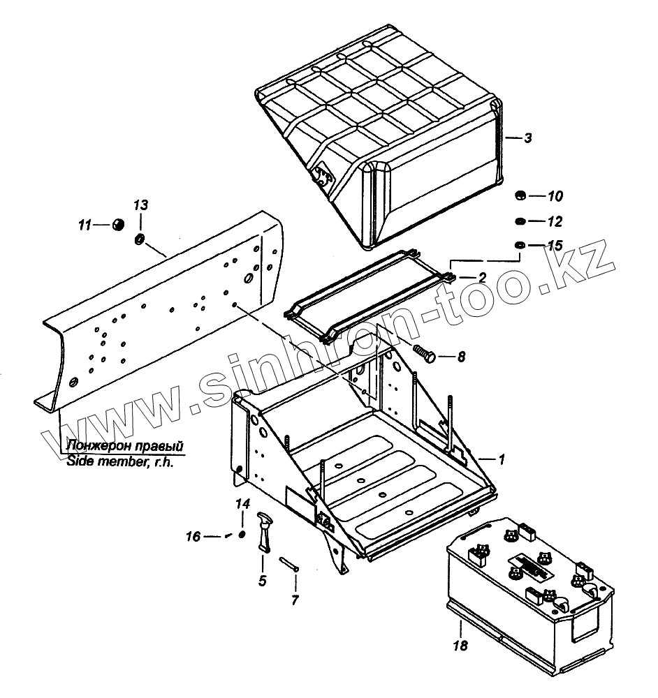 Каталог запасных частей к технике: Камский автозавод 65226. Установка аккумуляторных батарей