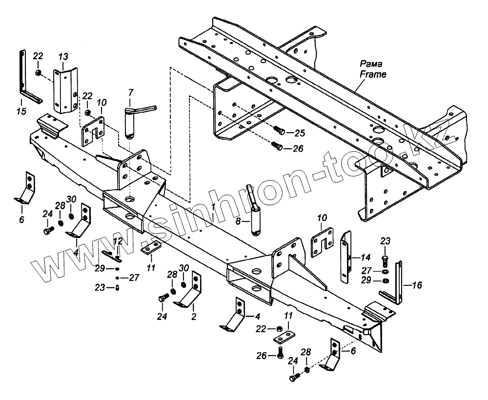 Каталог запасных частей к технике: Камский автозавод 65226. Установка буксирной поперечины