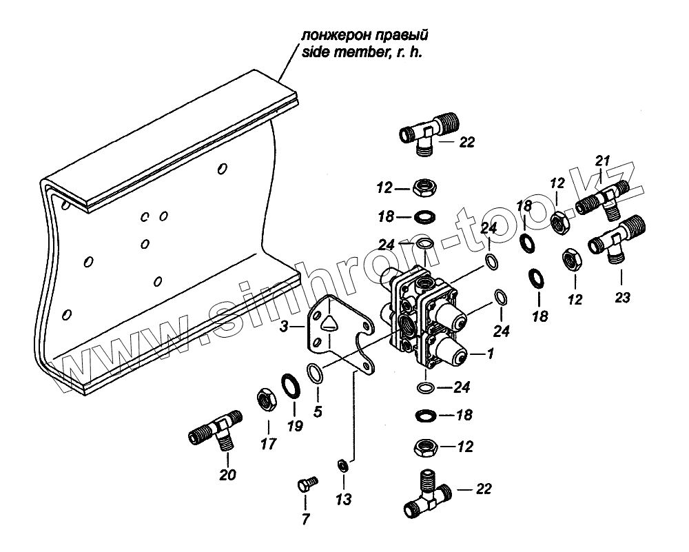 Каталог запасных частей к технике: Камский автозавод 65226. Установка четырехконтурного защитного клапана