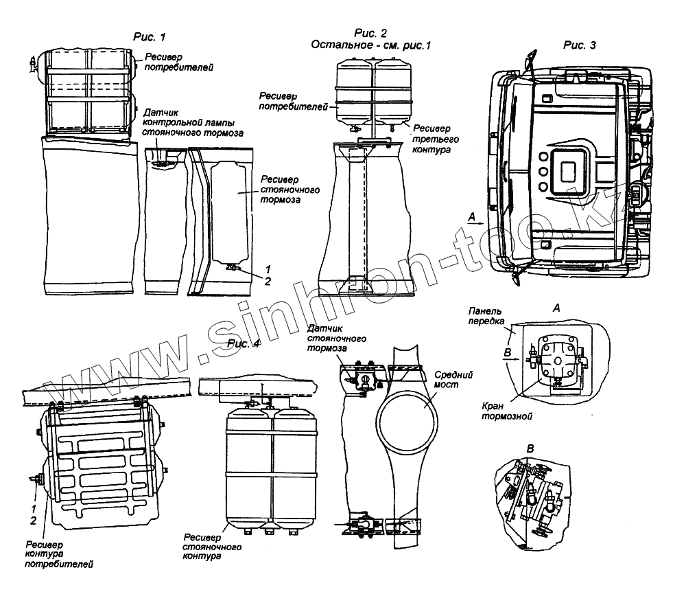 Каталог запасных частей к технике: Камский автозавод 65226. Установка датчиков аварийного давления воздуха