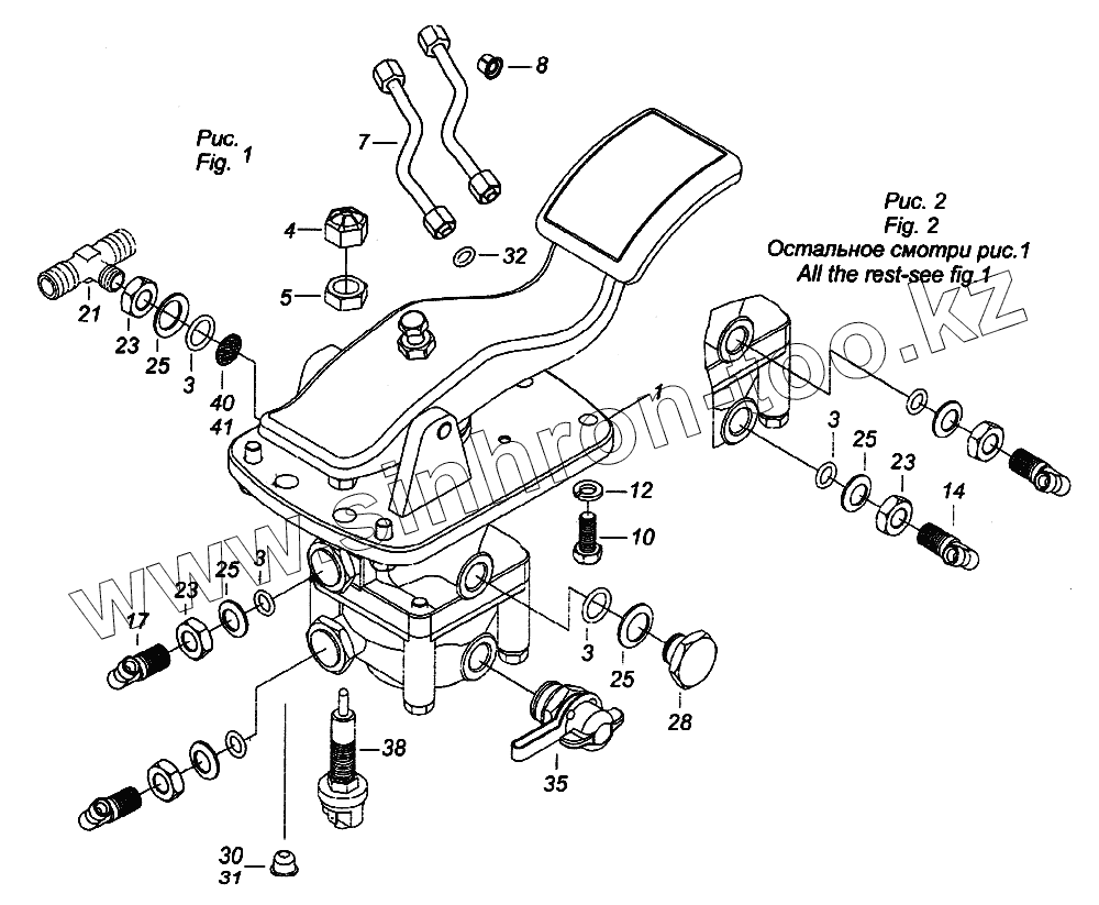 Каталог запасных частей к технике: Камский автозавод 65226. Установка двухсекционного тормозного крана
