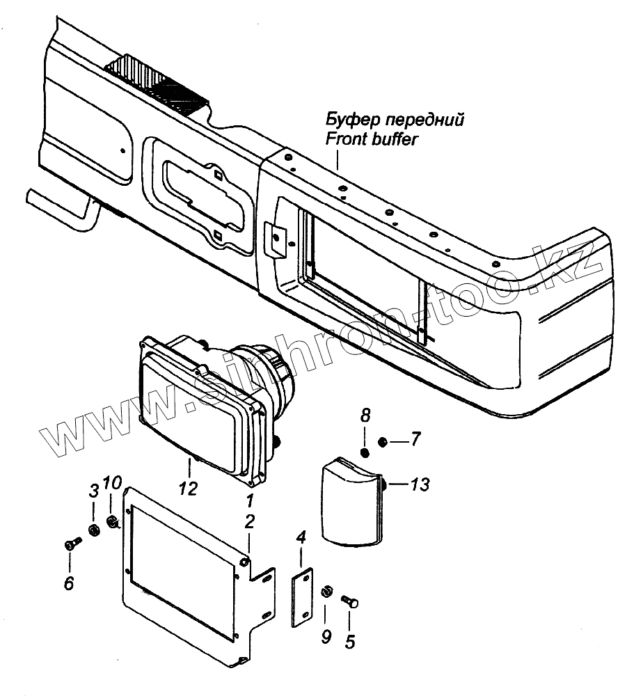 Каталог запасных частей к технике: Камский автозавод 65226. Установка фар и передних указателей поворота