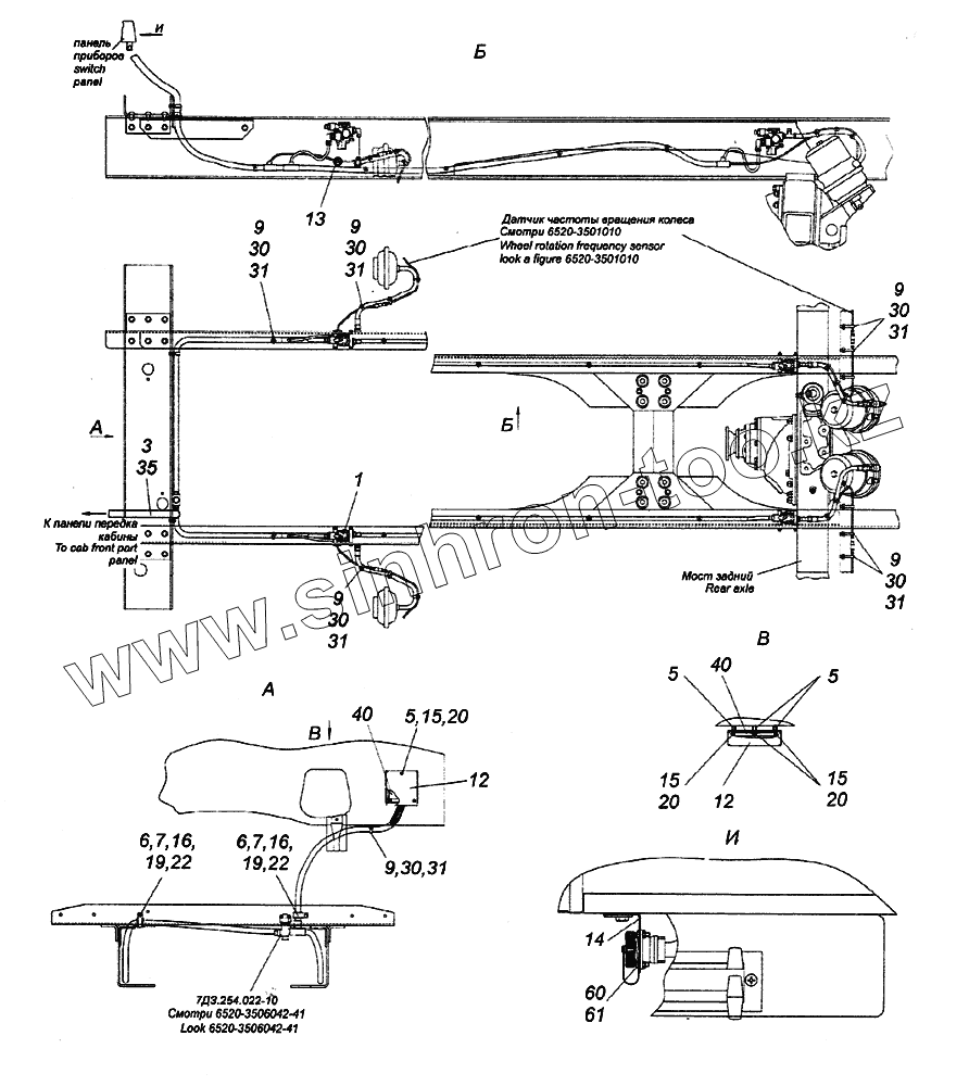 Каталог запасных частей к технике: Камский автозавод 65226. Установка кабелей АБС