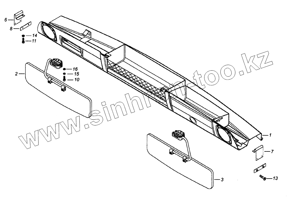 Каталог запасных частей к технике: Камский автозавод 65226. Установка надоконной полки и противосолнечных козырьков