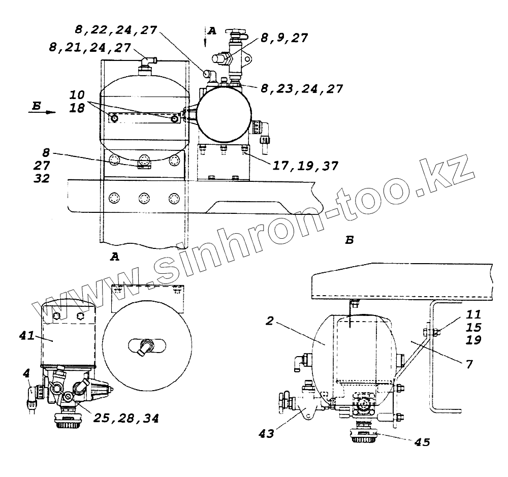 Каталог запасных частей к технике: Камский автозавод 65226. Установка осушителя