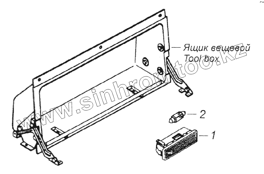 Каталог запасных частей к технике: Камский автозавод 65226. Установка плафона освещения вещевого ящика