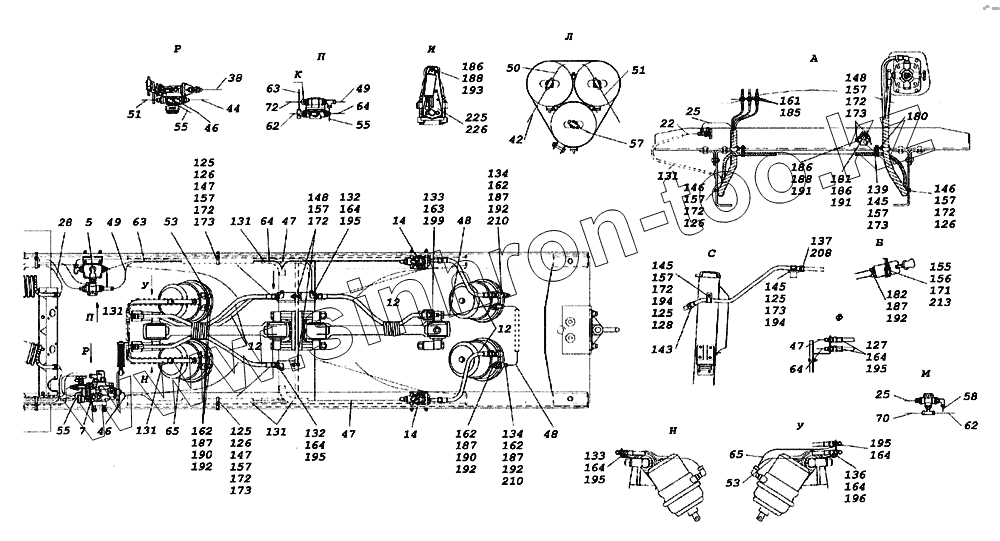 Каталог запасных частей к технике: Камский автозавод 65226. Установка пневмотормозов