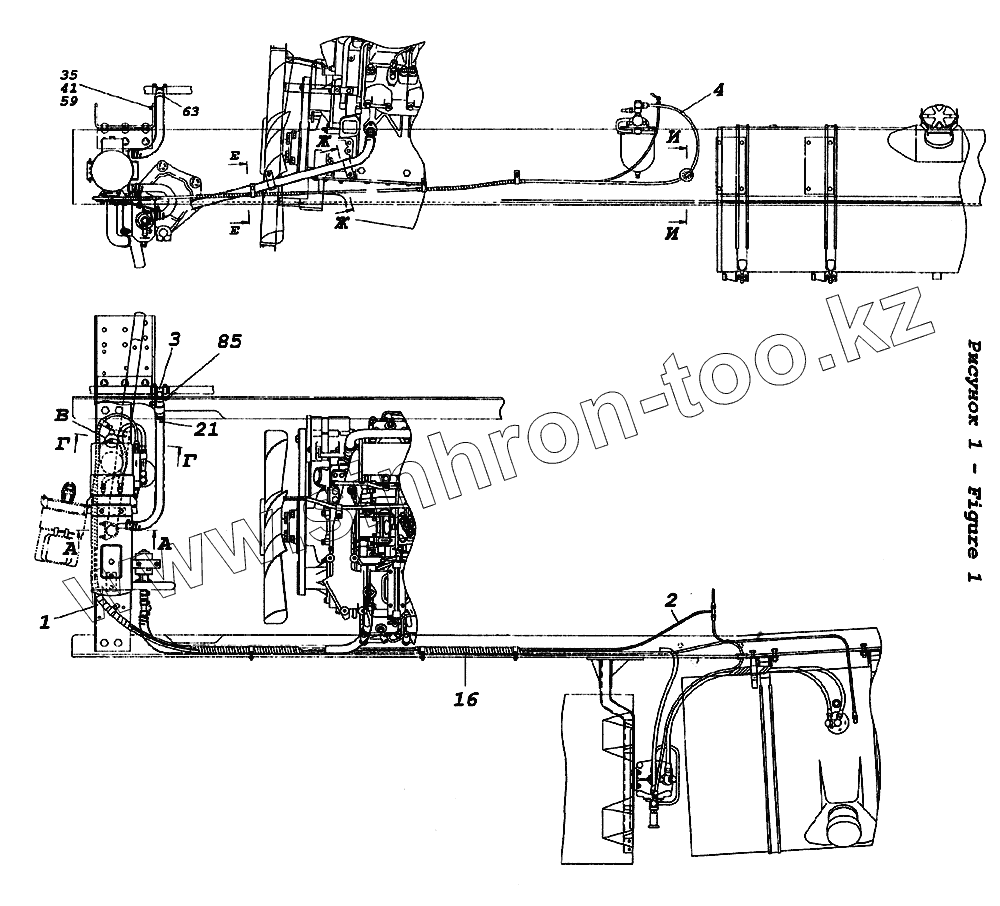 Каталог запасных частей к технике: Камский автозавод 65226. Установка подогревателя 15.8106