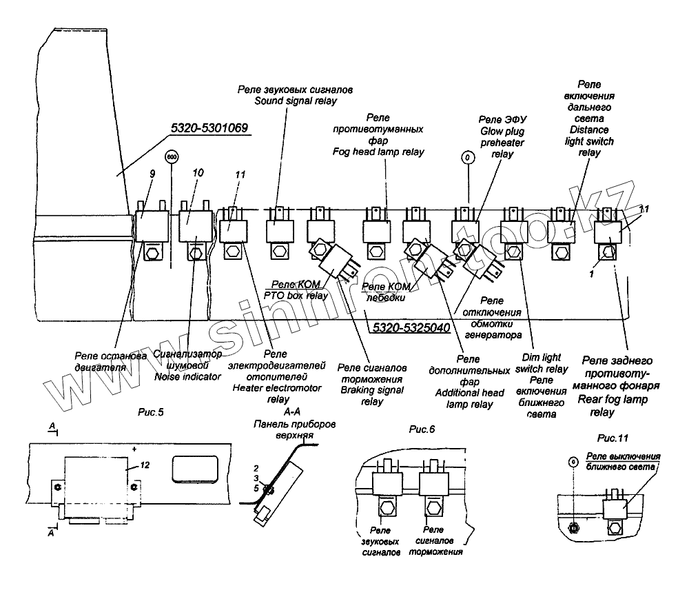 Каталог запасных частей к технике: Камский автозавод 65226. Установка реле