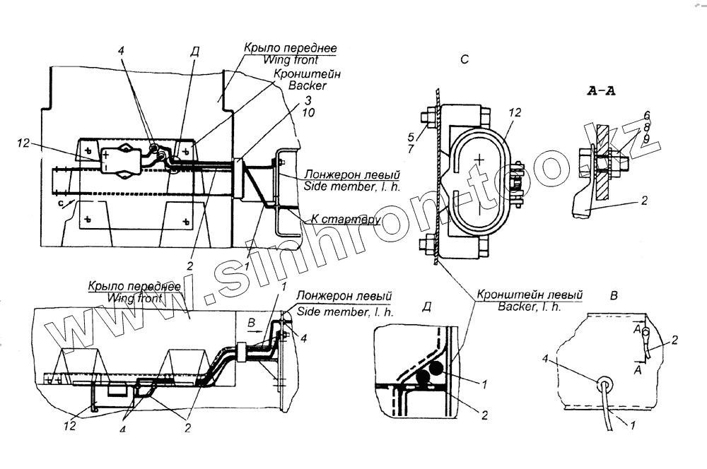 Каталог запасных частей к технике: Камский автозавод 65226. Установка розетки внешнего запуска