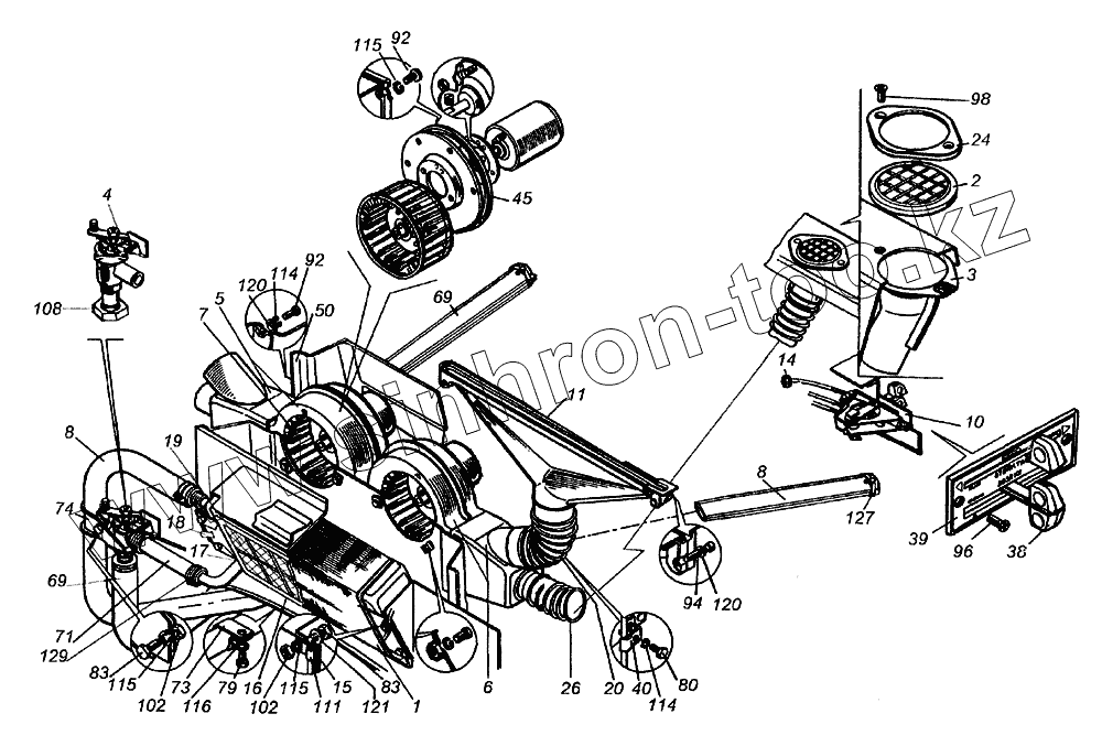 Каталог запасных частей к технике: Камский автозавод 65226. Установка системы отопления