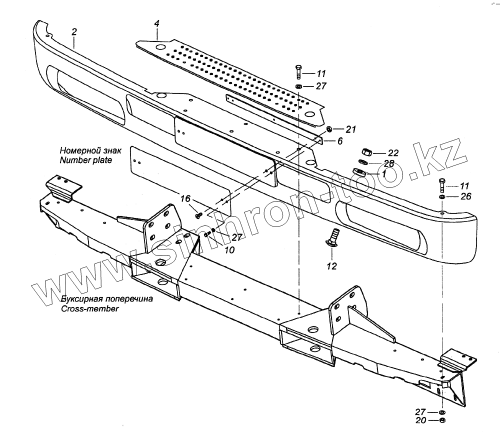 Каталог запасных частей к технике: Камский автозавод 65226. Установка спойлера