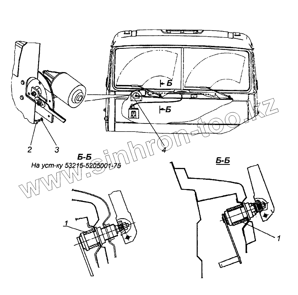 Каталог запасных частей к технике: Камский автозавод 65226. Установка стеклоочистителя