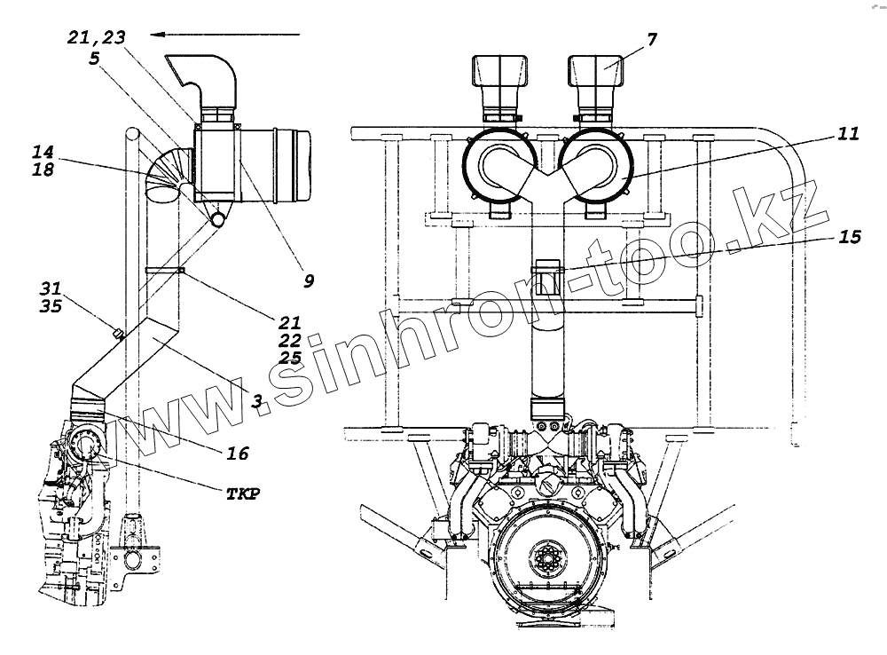 Каталог запасных частей к технике: Камский автозавод 65226. Установка воздушных фильтров