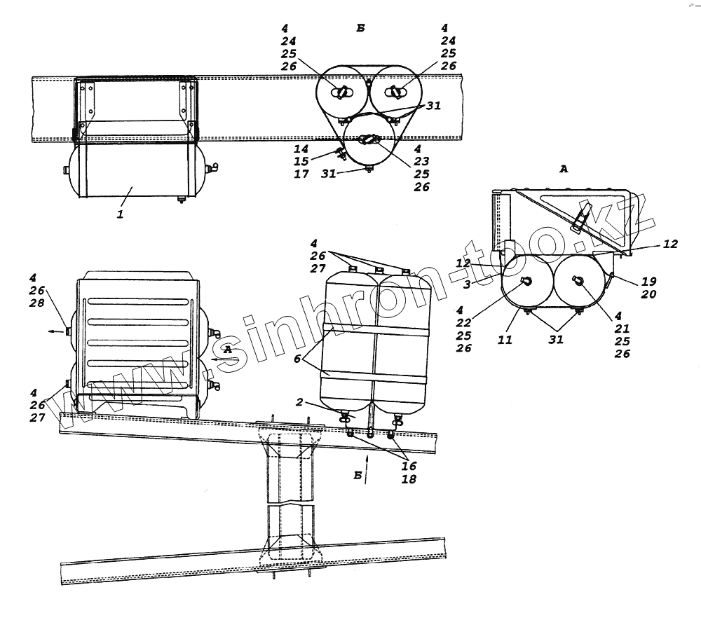Каталог запасных частей к технике: Камский автозавод 65226. Установка воздушных ресиверов