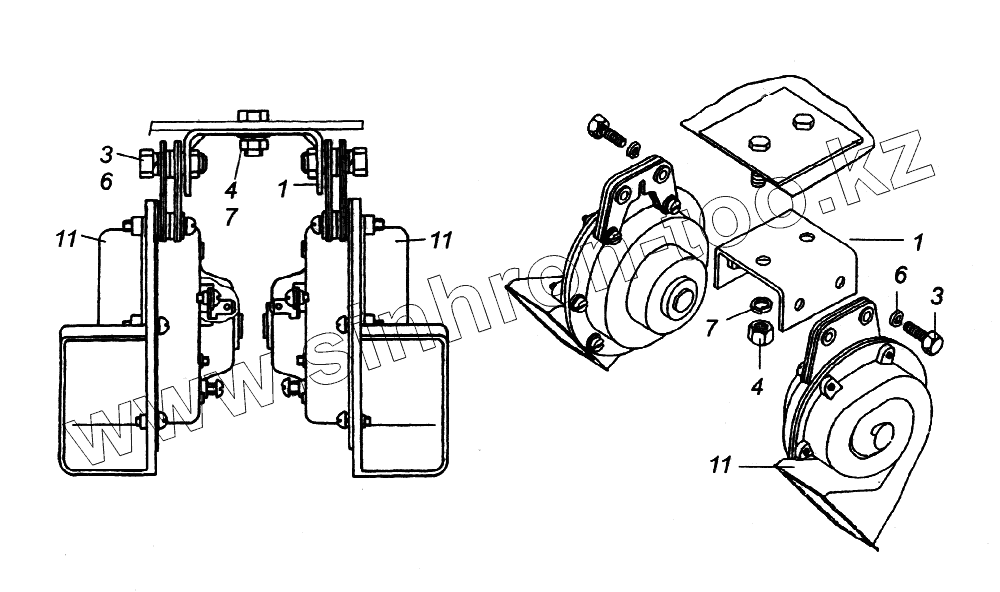 Каталог запасных частей к технике: Камский автозавод 65226. Установка звуковых электрических сигналов
