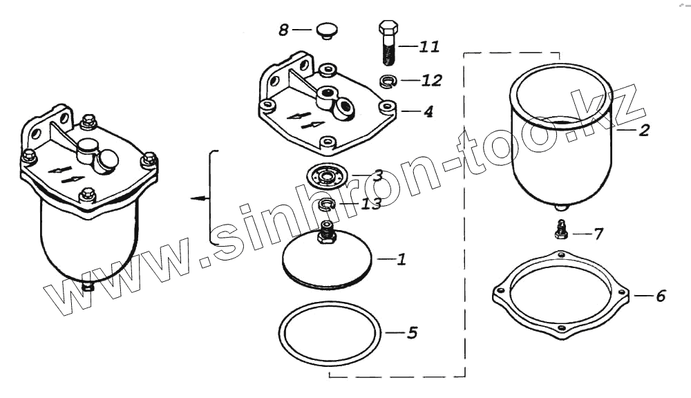Каталог запасных частей к технике: Камский автозавод 6522. Фильтр грубой очистки топлива в сборе