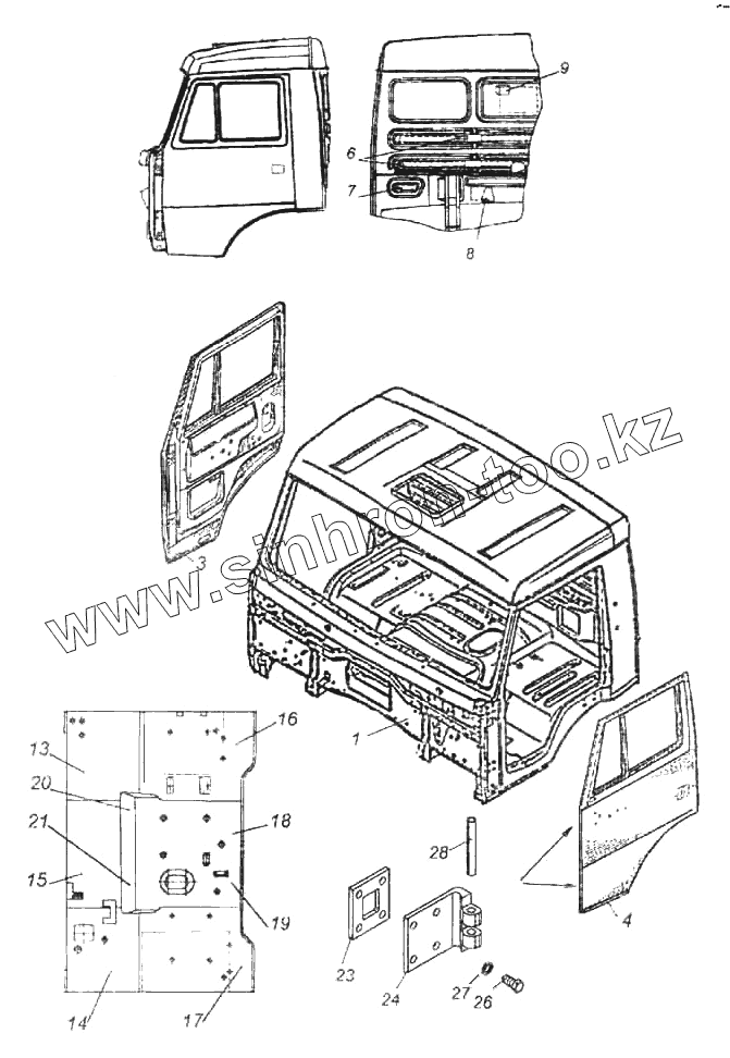 Каталог запасных частей к технике: Камский автозавод 6522. Кабина с дверьми окрашенная