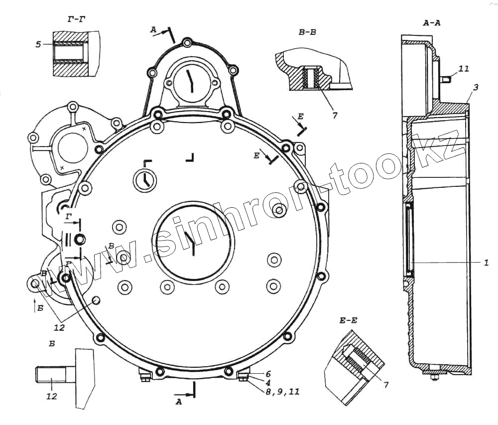 Каталог запасных частей к технике: Камский автозавод 6522. Картер маховика