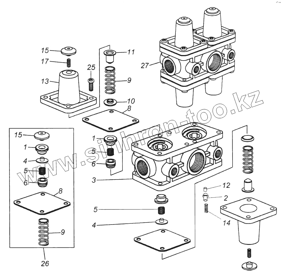 Каталог запасных частей к технике: Камский автозавод 6522. Клапан защитный четырехконтурный