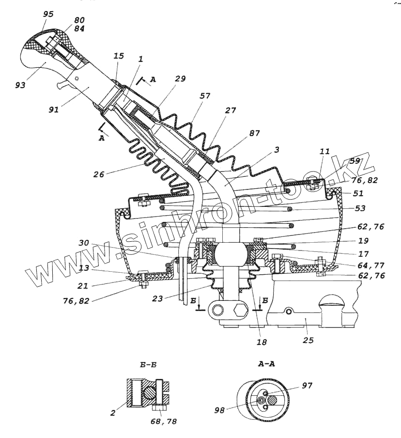 Каталог запасных частей к технике: Камский автозавод 6522. Опора рычага переключения передач