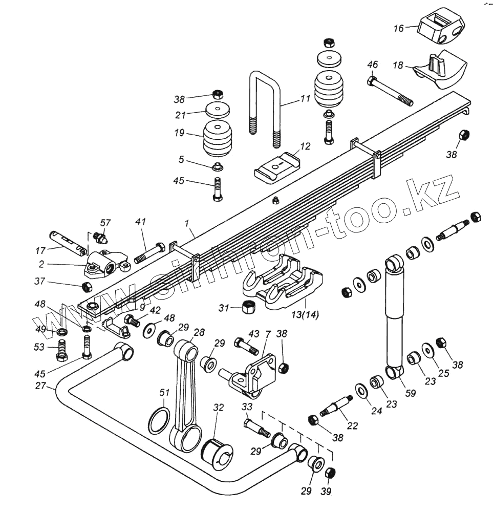 Каталог запасных частей к технике: Камский автозавод 6522. Подвеска передняя