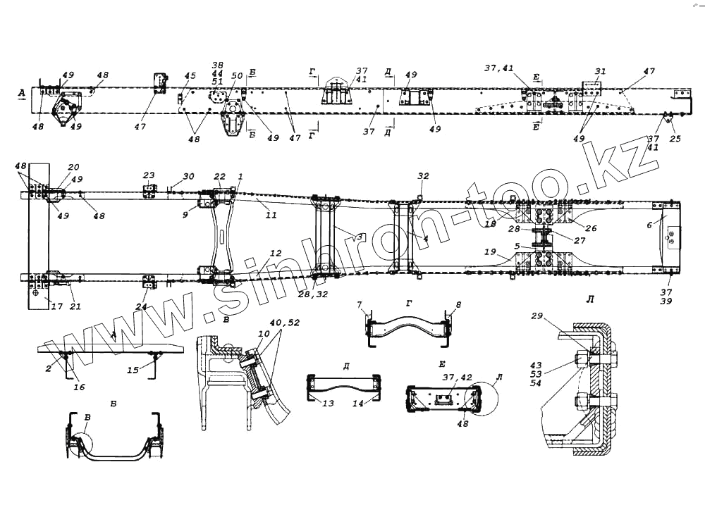 Каталог запасных частей к технике: Камский автозавод 6522. Рама