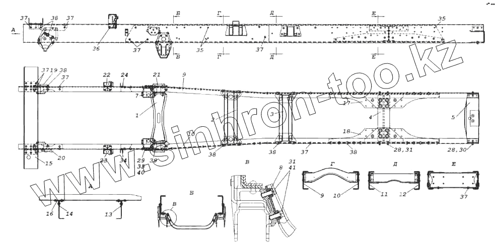 Каталог запасных частей к технике: Камский автозавод 6522. Рама