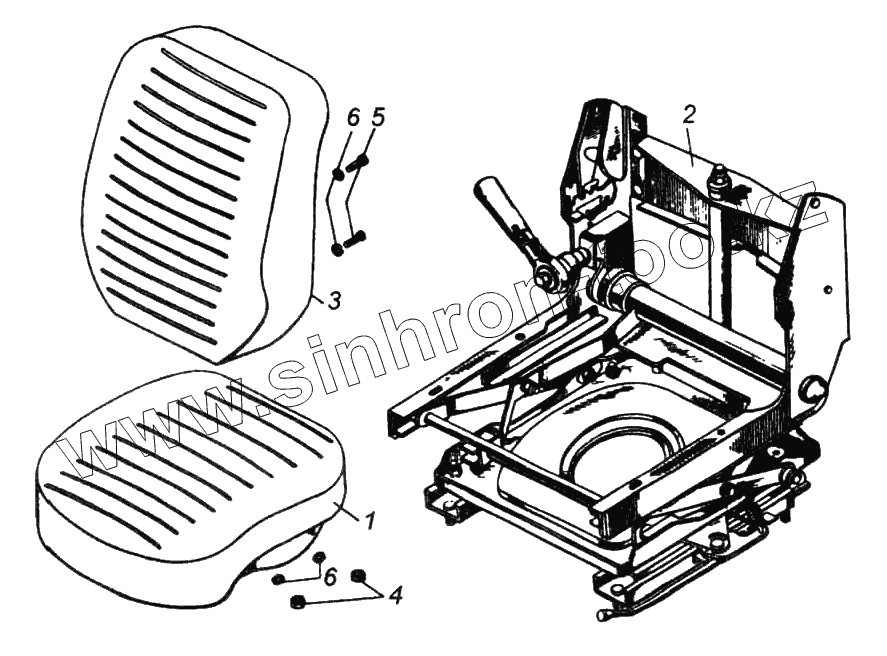 Каталог запасных частей к технике: Камский автозавод 6522. Сиденье водителя