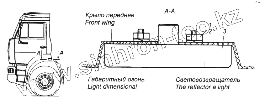 Каталог запасных частей к технике: Камский автозавод 6522. Установка боковых габаритных фонарей