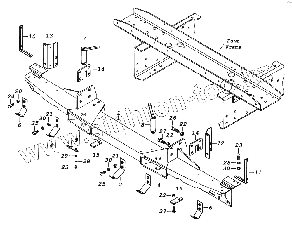 Каталог запасных частей к технике: Камский автозавод 6522. Установка буксирной поперечины