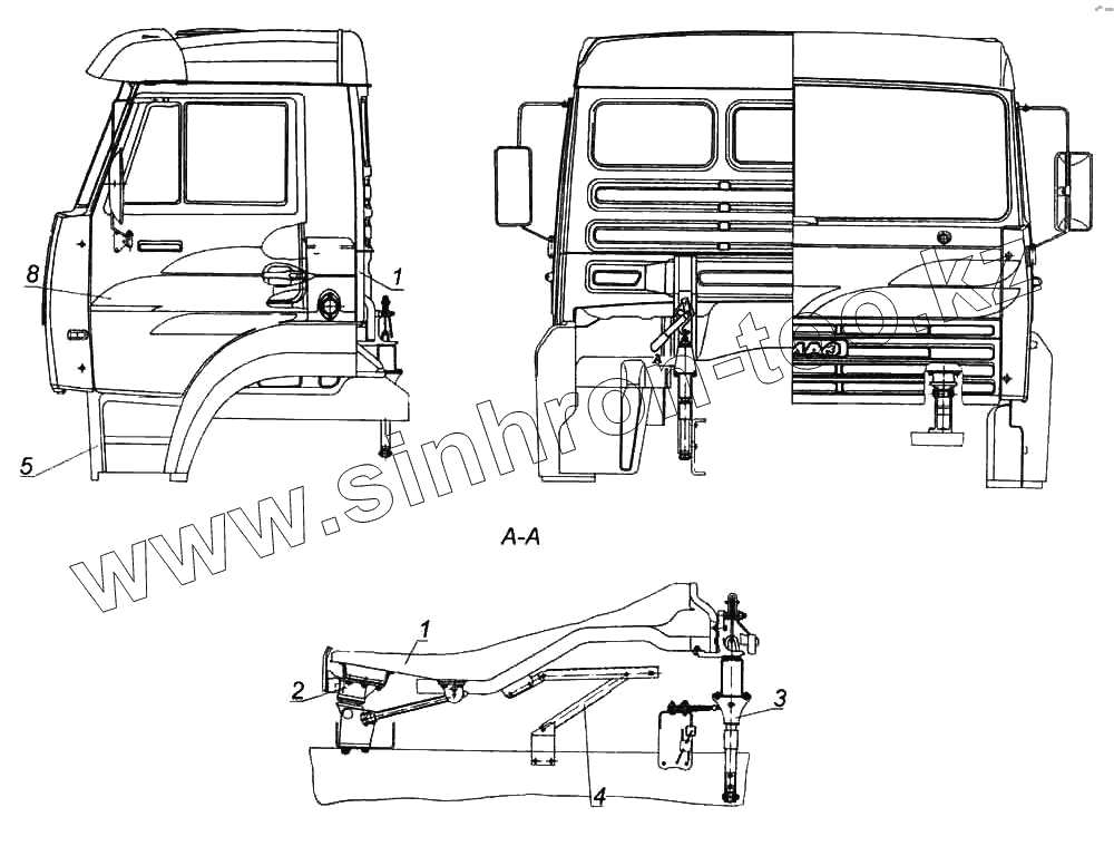 Каталог запасных частей к технике: Камский автозавод 6522. Установка кабины с оперением