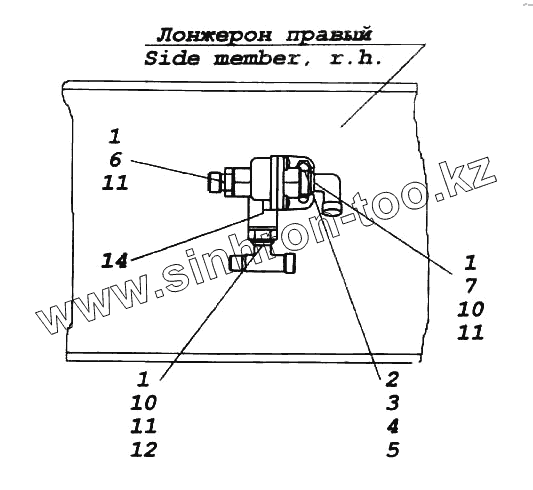 Каталог запасных частей к технике: Камский автозавод 6522. Установка клапана двухмагистрального