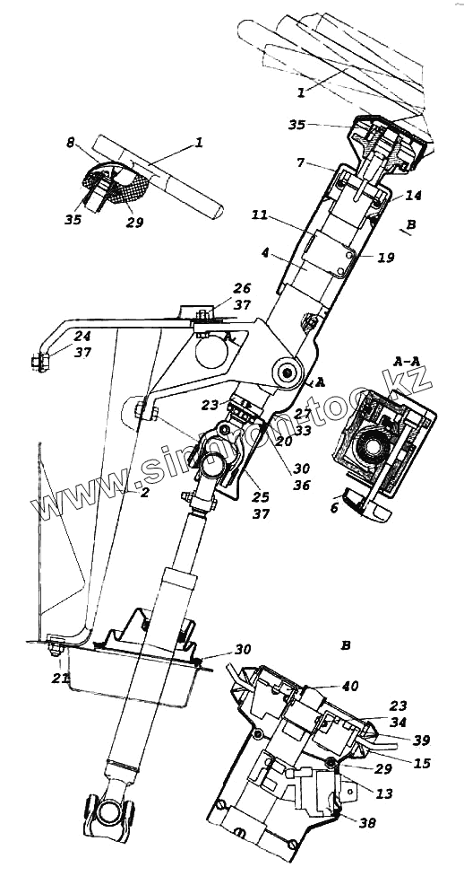 Каталог запасных частей к технике: Камский автозавод 6522. Установка колонки рулевого управления